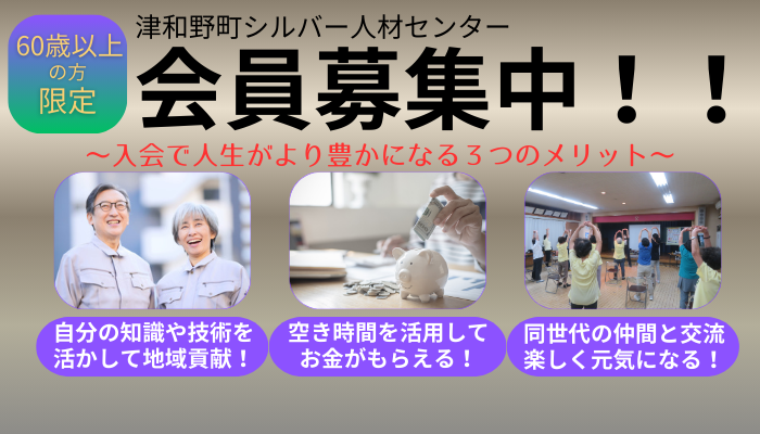 TOP入会についてはこちら殿町通り鷺舞モニュメント作業風景令和7年度の年末年始休業について2025年12月25日交通安全講習会&認知症サポーター養成講座2025年12月15日【会員の皆様】認知症サポーター養成講座を開催します!2025年11月11日【会員の皆様】交通安全講習会を開催します!2025年10月22日津和野連絡所移転のお知らせ2025年6月24日『シルバー人材センター』は、会員に仕事や行事参加の機会を提供し、地域貢献・生きがいづくり・仲間づくりを通して”人生をより豊かに”してもらう組織です!仕事をしたい方、同年代の会員と交流したい方のご入会をお待ちしております!お仕事をご依頼ください。シルバー人材センターの会員が豊富な知識と経験、技術を活かして、誠実・丁寧に作業にあたります!「こんな仕事はできる?」「費用はいくらくらいかかる?」など、お気軽にお問い合わせください!